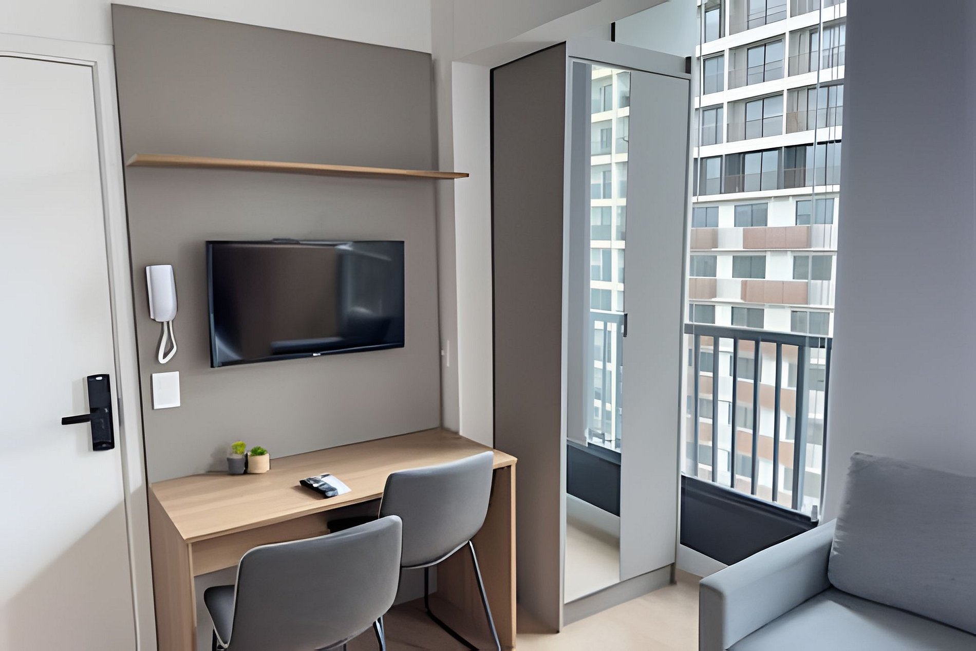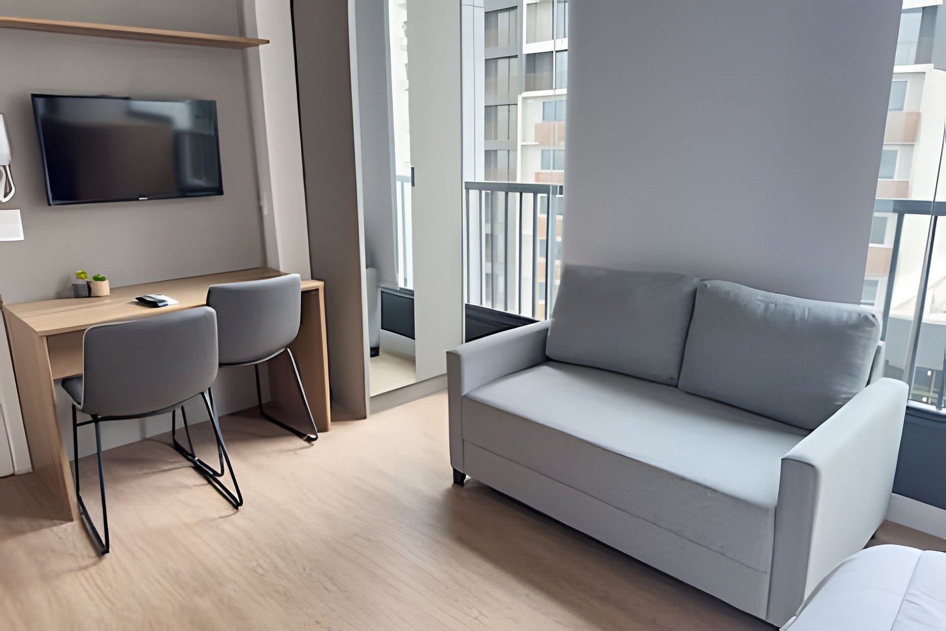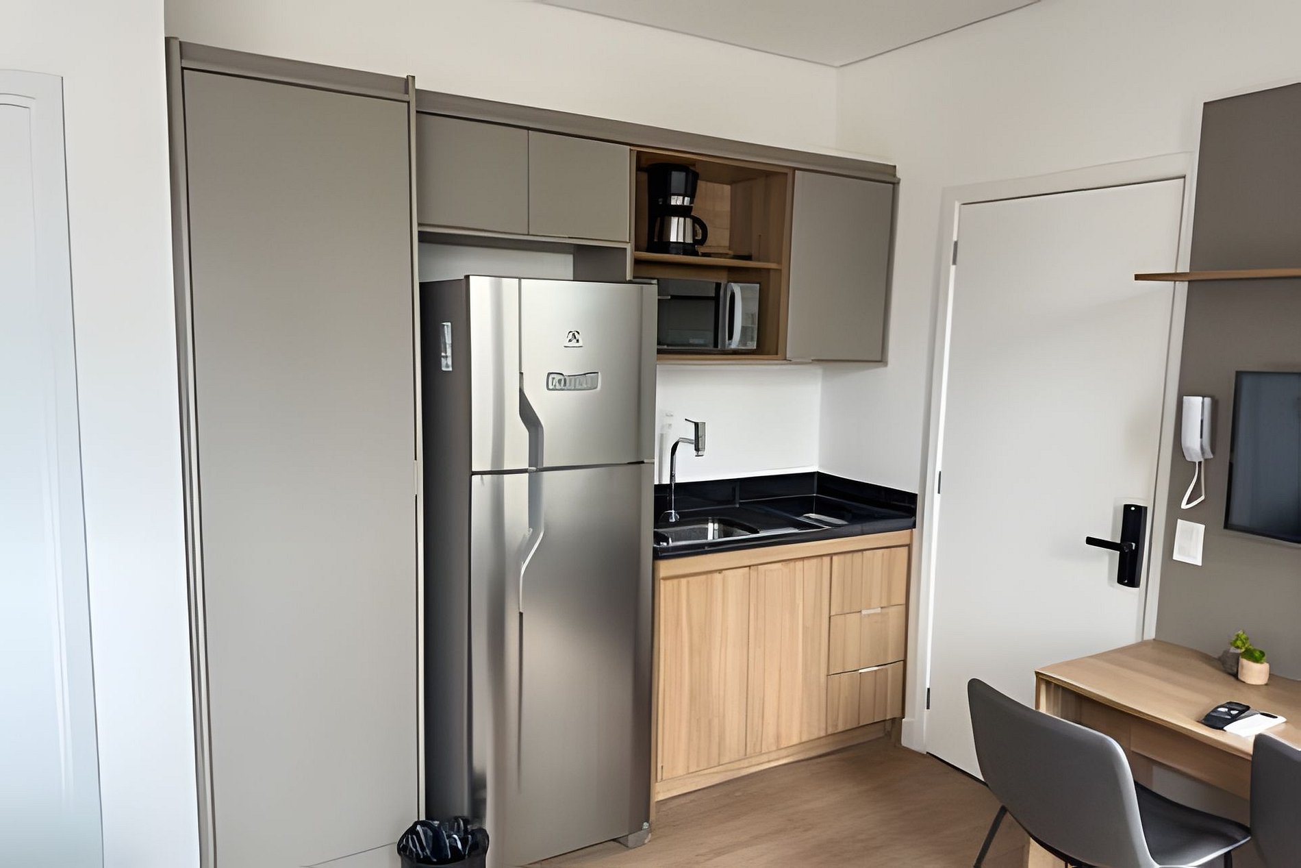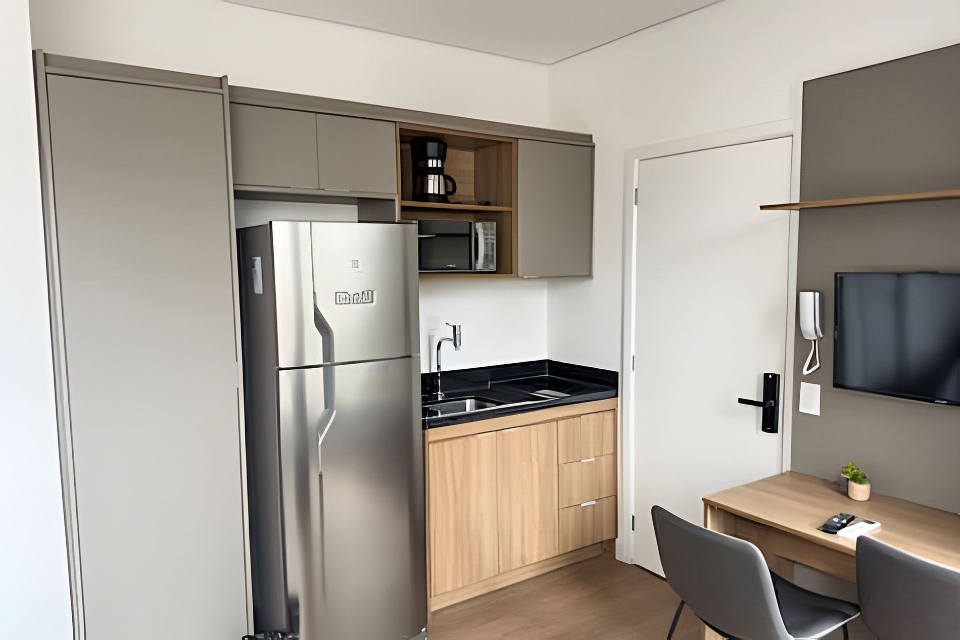 Tudo está pronto para você: check-in facilitado, serviços adicionais acessíveis pelo aplicativo e ambientes pensados para o seu conforto. Os espaços são modernos e funcionais, equipados com Wi-Fi, TV a cabo, enxoval completo com toalhas e roupa de cama, além de uma cozinha compacta com geladeira, cooktop de indução, micro-ondas e utensílios que tornam sua estadia ainda mais conveniente.
