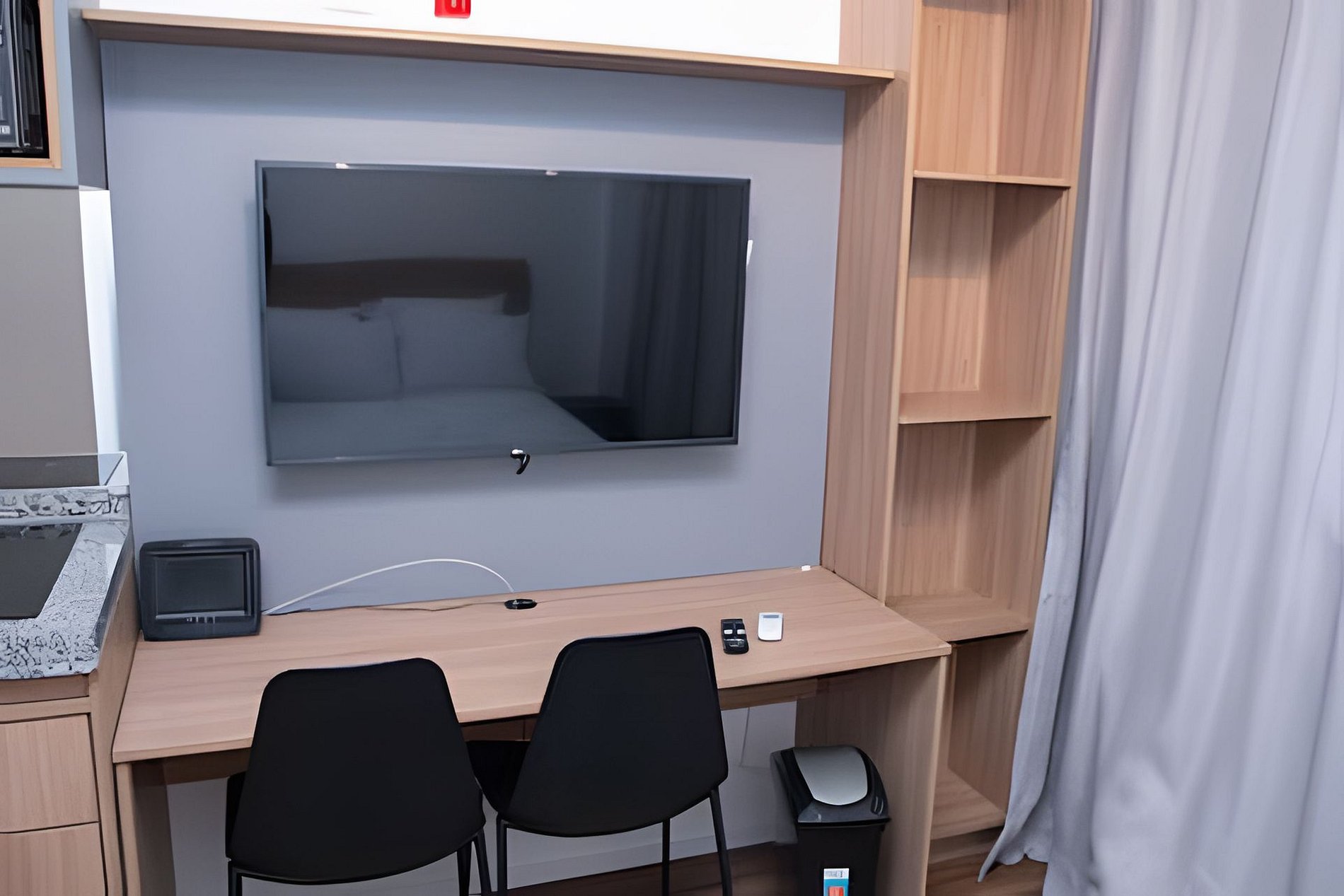 -Ambiente aconchegante com decoração moderna e funcional.