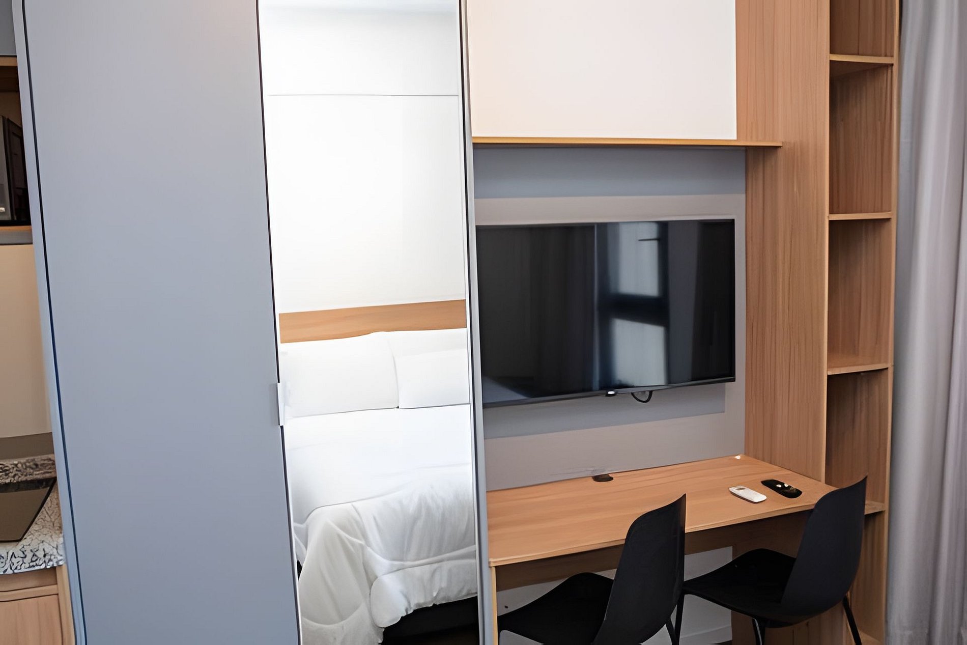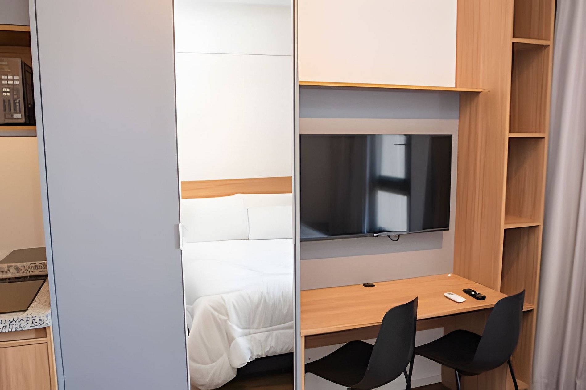 Nosso espaço foi pensado para proporcionar praticidade e aconchego, ideal tanto para estadias curtas quanto longas: