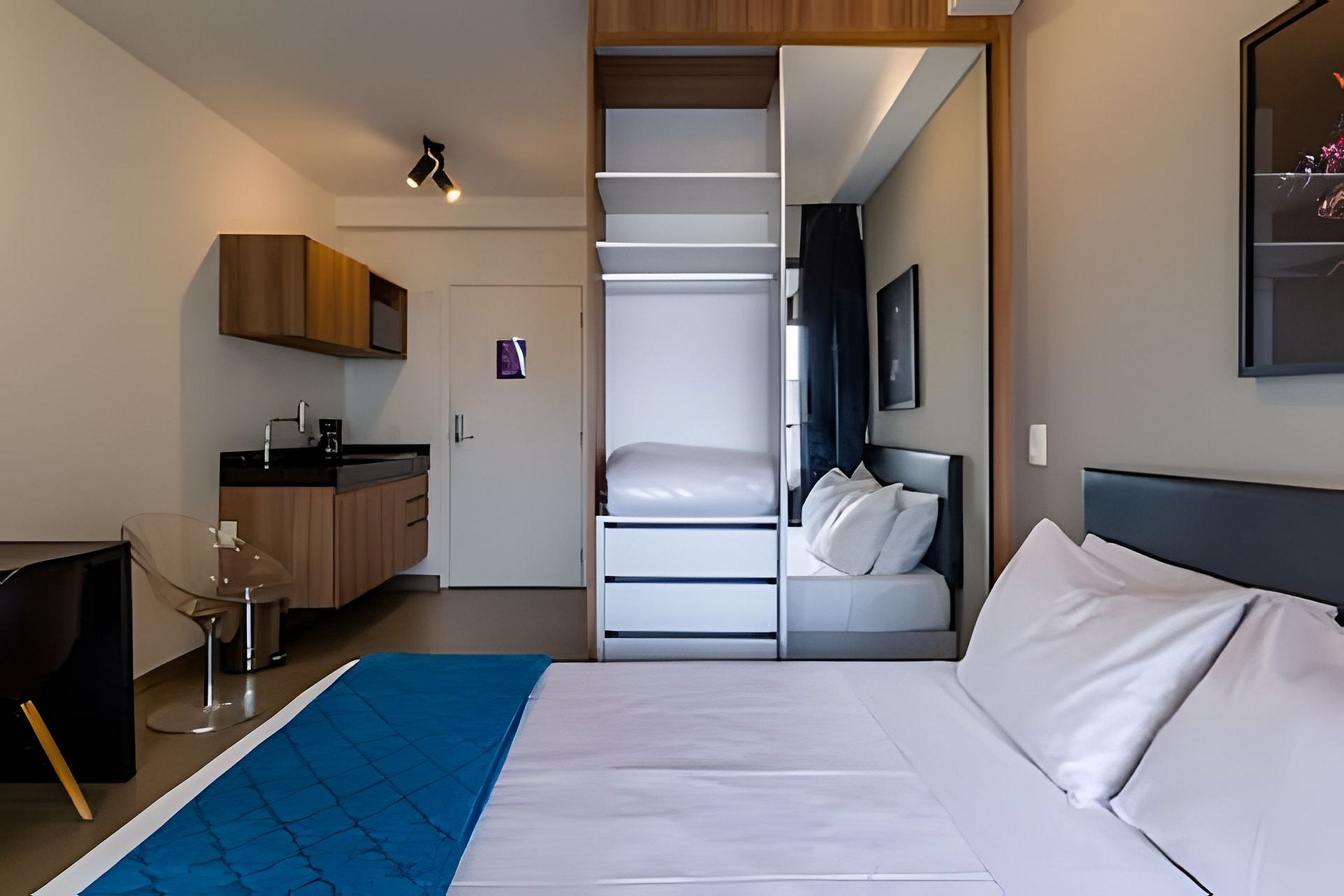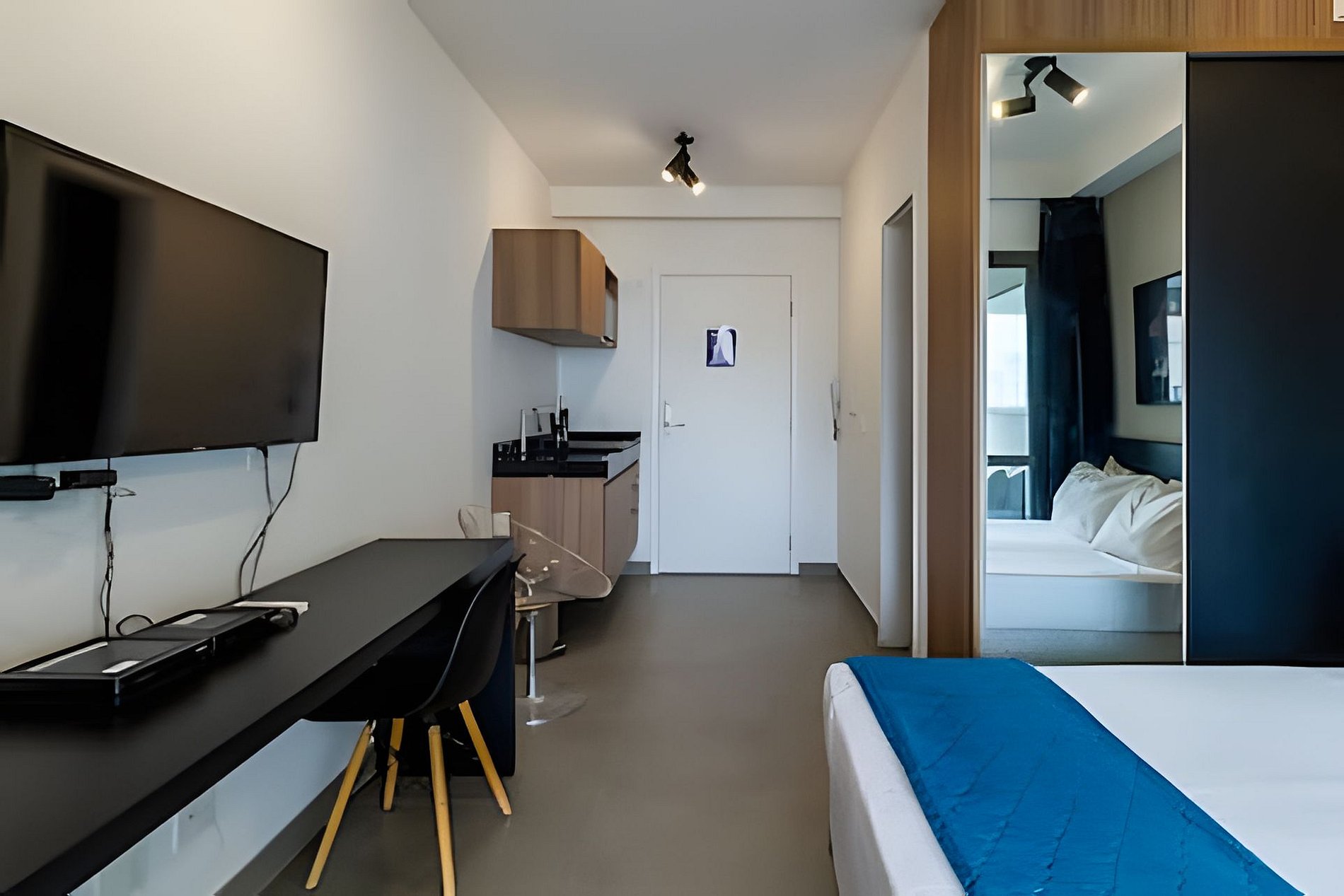 Nosso apartamento foi cuidadosamente projetado para combinar sofisticação e funcionalidade, oferecendo o ambiente ideal tanto para estadias curtas quanto prolongadas. Cada detalhe foi selecionado para garantir o máximo de conforto e satisfação durante sua hospedagem. No apartamento, você desfruta de conectividade com Wi-Fi de alta velocidade, ideal para trabalho e lazer, além de uma Smart TV com acesso às principais plataformas de streaming (utilize suas próprias contas). A cozinha completa conta com cooktop por indução, geladeira e todos os utensílios essenciais para suas refeições. O dormitório dispõe de cama premium com roupa de cama de alta qualidade e amplo guarda-roupas. O banheiro oferece chuveiro a gás e toalhas macias para seu conforto. A estrutura do edifício inclui uma área de lazer com piscina, academia equipada com aparelhos modernos, espaço dedicado para a prática de pilates, lavanderia compartilhada e segurança 24 horas.
