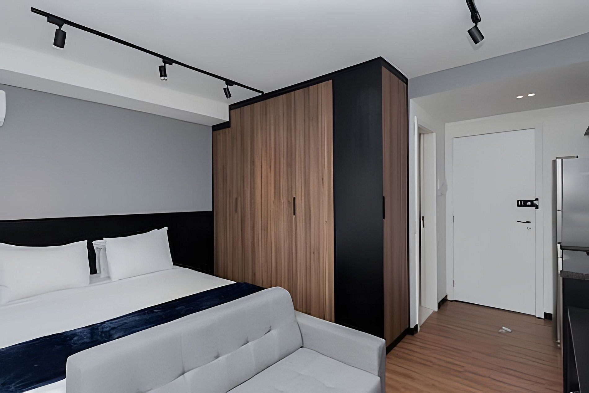 Ambiente Integrado: Um espaço inteligente e funcional, com uma cama confortável para noites revigorantes.