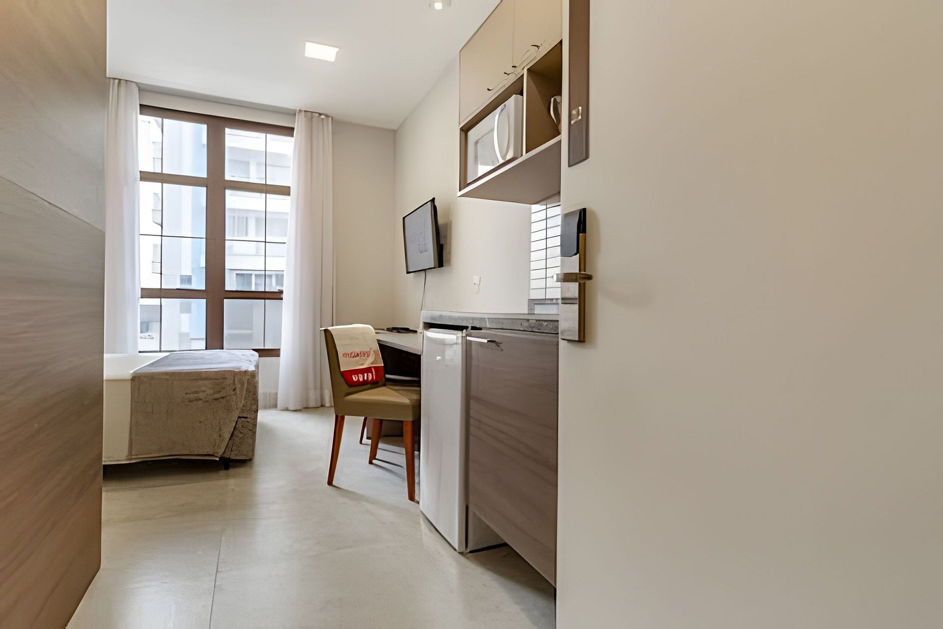 O apartamento no Edifício Jacques Pilon Residence oferece um ambiente completo e acolhedor. O espaço inclui uma cozinha completa para suas refeições, TV Smart para entretenimento e uma cama confortável para garantir seu descanso. Todas as comodidades necessárias para uma estadia prática e relaxante no Centro Histórico de São Paulo.