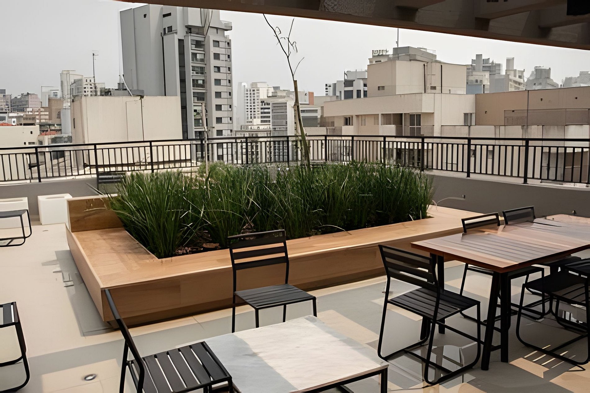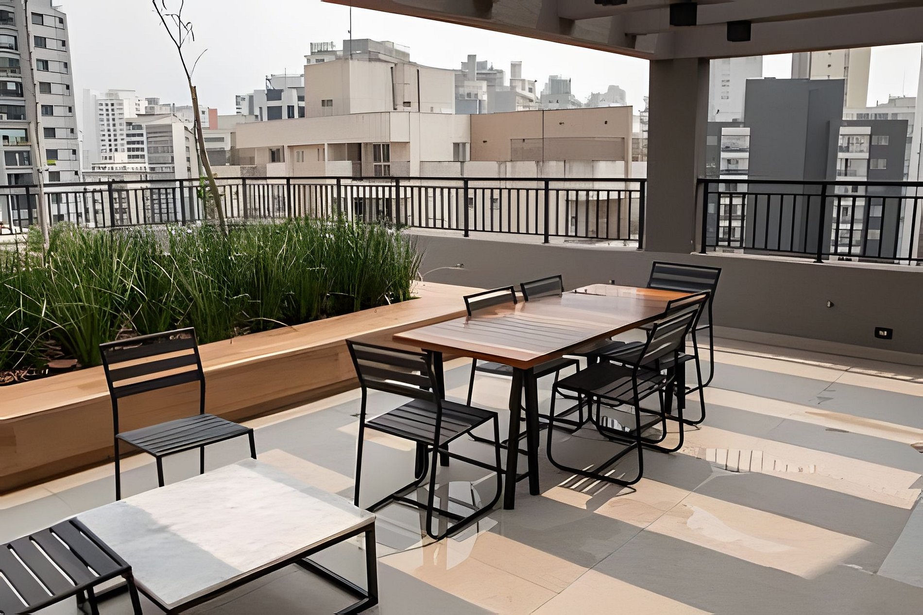 Terraço: O palco para os finais de tarde mais especiais. Um espaço amplo para contemplar a vista, socializar ou trabalhar ao ar livre.