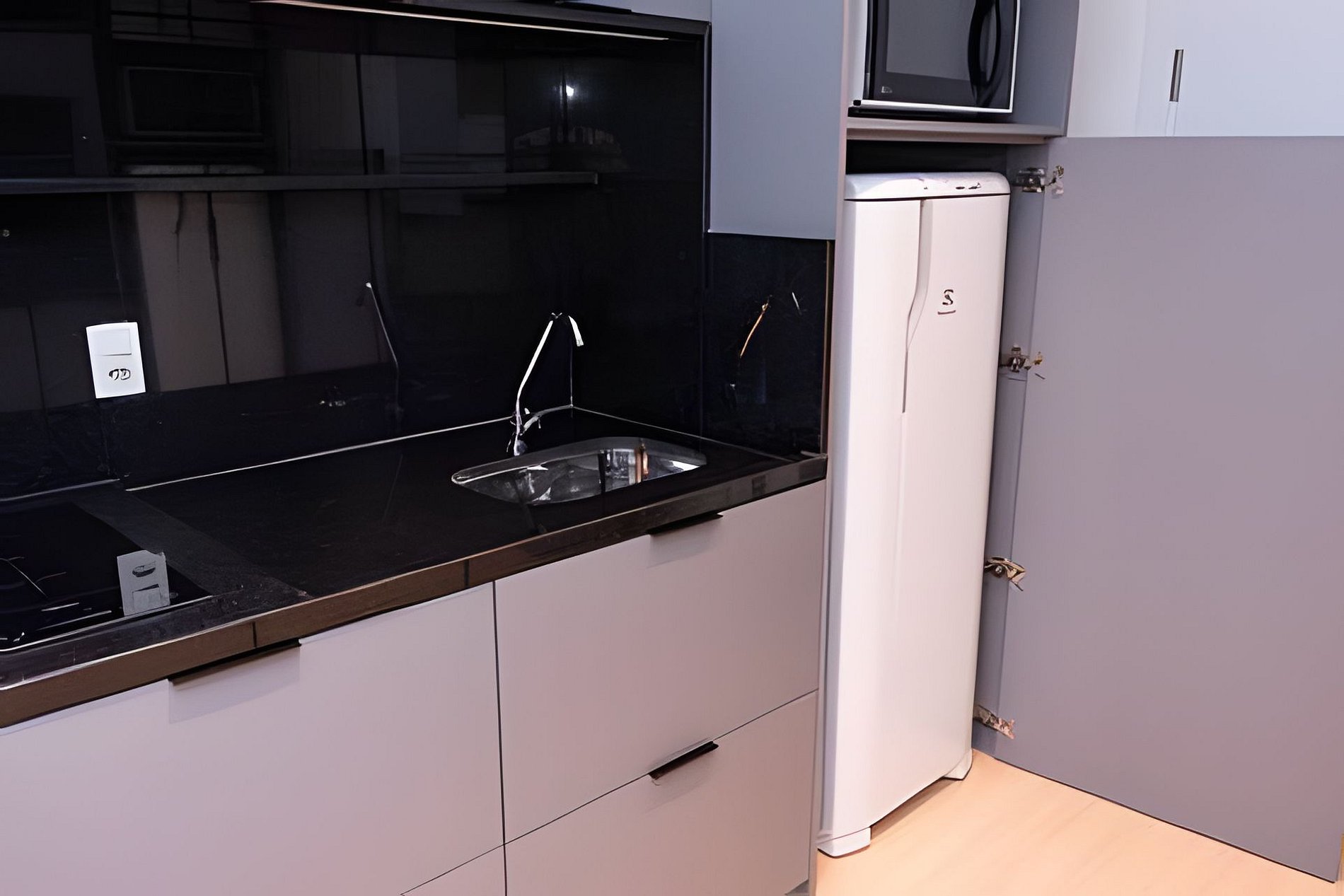 Cozinha completa (fogão, geladeira, micro-ondas e utensílios). Conforto e praticidade para trabalho ou lazer em localização privilegiada, a minutos do metrô, com fácil acesso a comércio e serviços