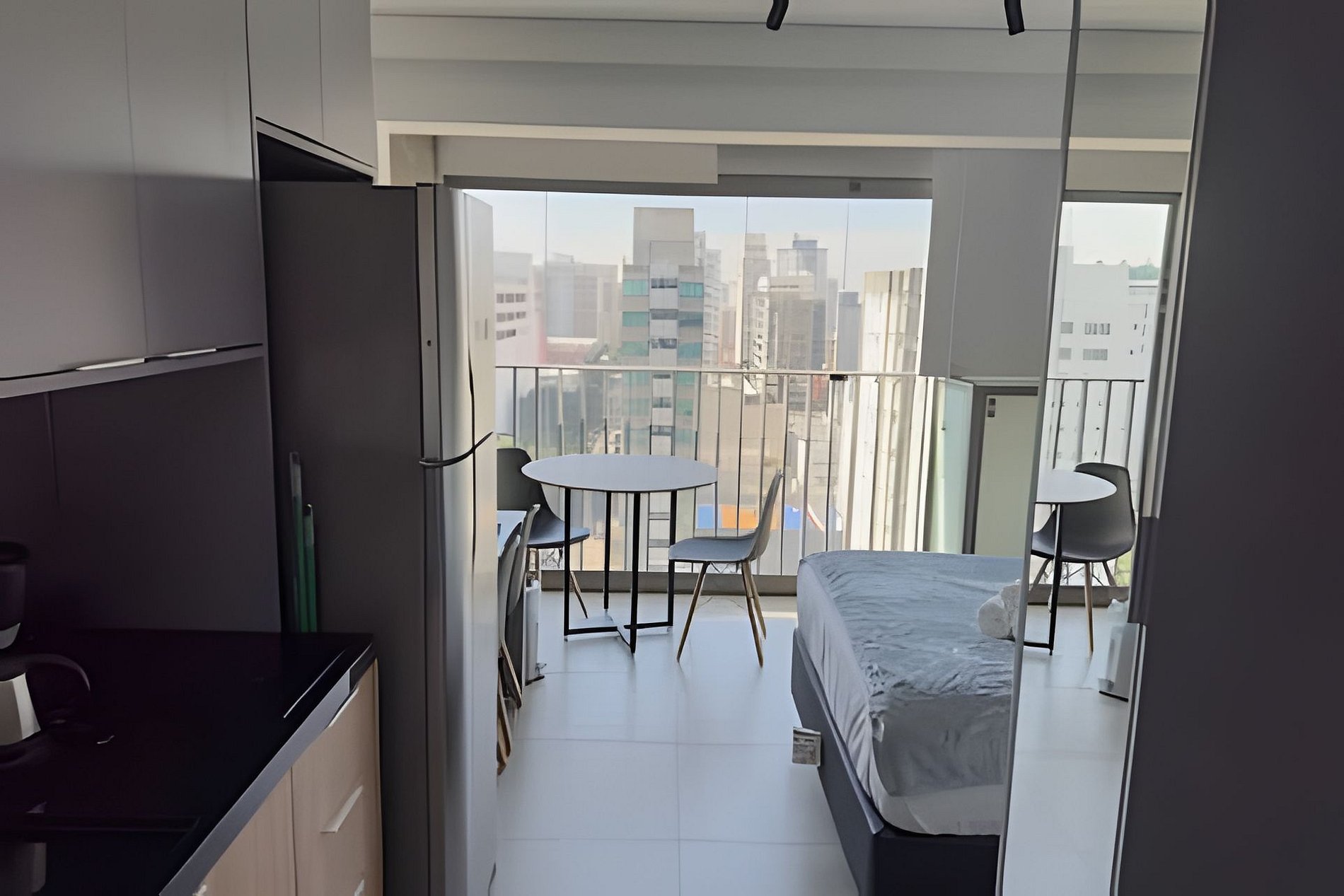 Conforto, funcionalidade e boa localização. Studio compacto com cama aconchegante, cozinha com utensílios, internet veloz e ótima ventilação. Perfeito para estadias curtas ou longas.